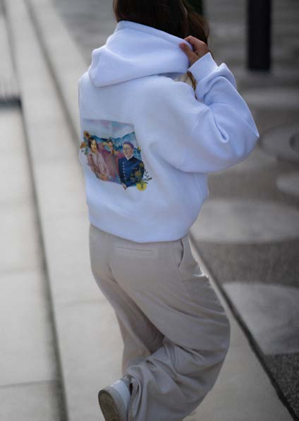 Das The Voices Hoodie von Olga feiert die ukrainische Identität. Das Design zeigt die literarischen Ikonen Mykola Gogol, Hryhoriy Skovoroda und Lesya Ukrainka – Menschen, die für die ukrainische Sprache und Kultur gekämpft haben. Dieses Hoodie trägt die Botschaft der Widerstandskraft: die kulturelle Stimme zurückzuerobern, die so oft unterdrückt wurde.